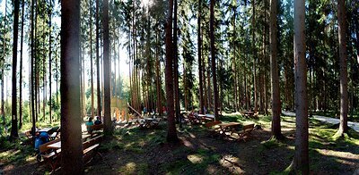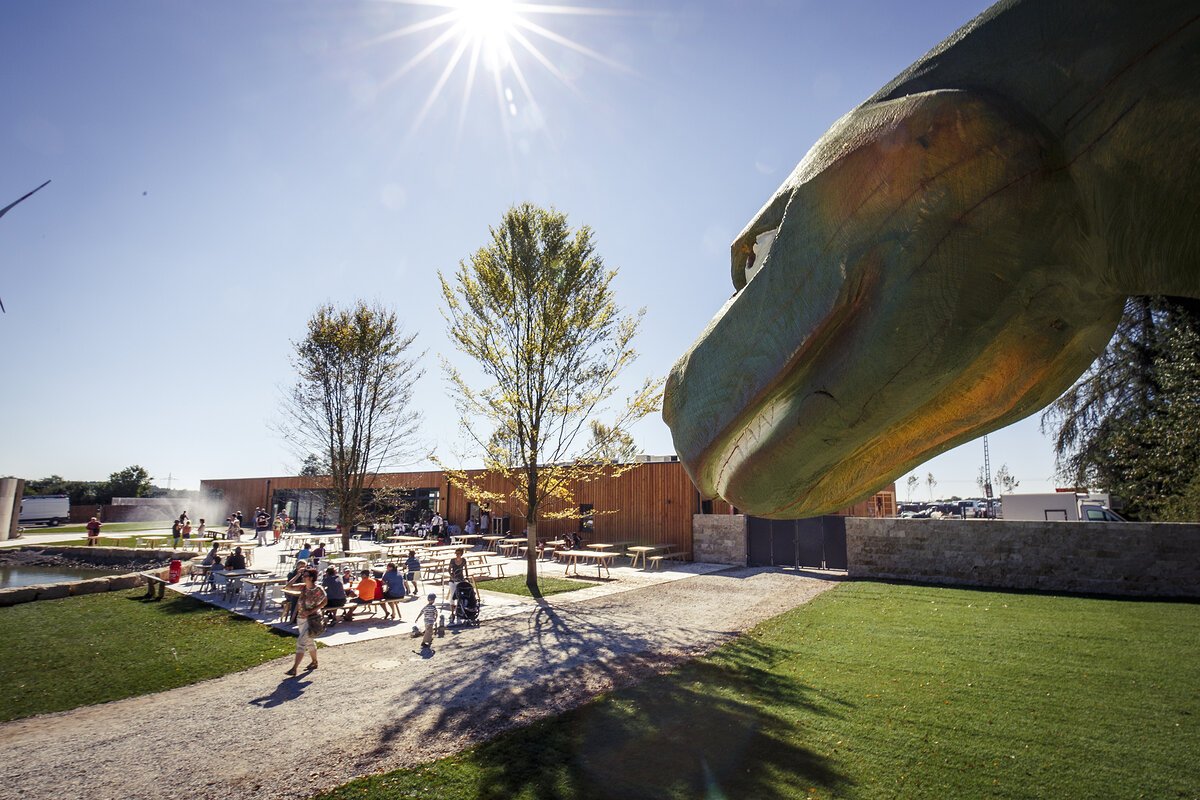 Giganten der Urzeit Die Besucher wandern auf einem ca. 1,5 Kilometer langen, wie verzaubert wirkenden Waldweg durch 400 Millionen Jahre Erdgeschichte. Sie begegnen dabei über 70 lebensechten Nachbildungen von Dinosauriern und anderen Urzeittieren, von denen einige so groß sind, dass sie die Wipfel der Bäume überragen.